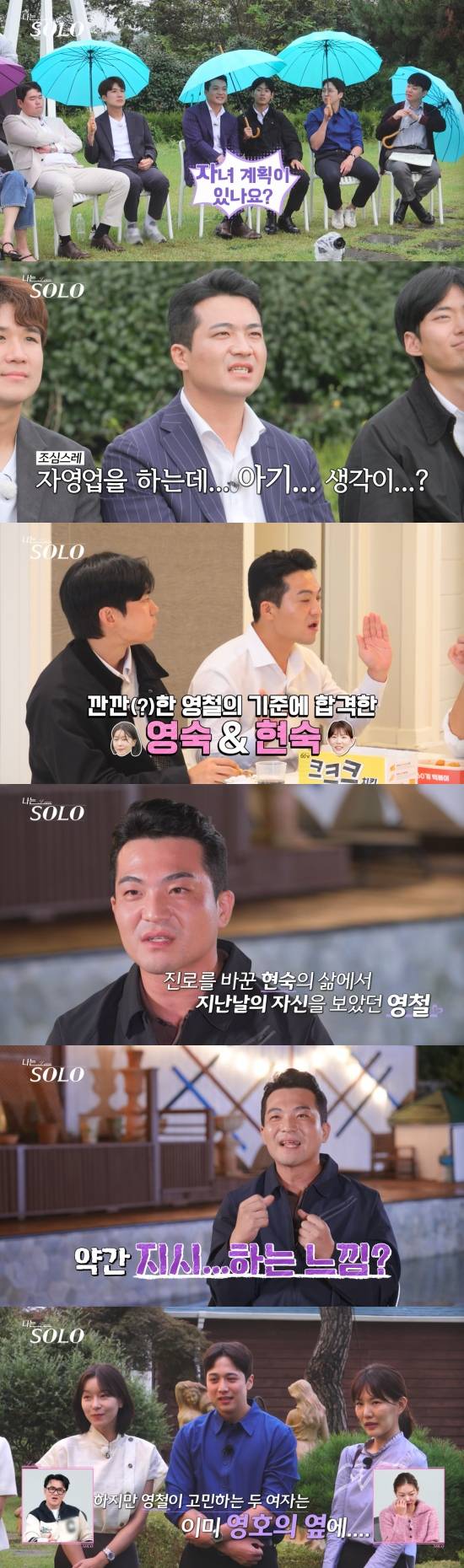 이어 현숙에게는 "엄청 밝으신 것보다 차분하신데 어떨 때 가장 기쁘냐", "자영업을 하는데 아기 생각이 있다면 어떻게 괜찮으시겠냐"고 질문했다. 현숙은 "약국이 잘 될 때가 제일 기쁘다", " 아기 생각은 강하게 있다. 저 대신에 약국을 사실상 운영해 주실 약사님을 뽑아서 인수인계하고 2주를 통으로 비웠다. 출산, 육아하는 동안 근무하실 분을 구해서 (공백에 대한 부분은) 상관 없다"고 답했고, 이에 영철은 흡족해하는 표정을 지었다.