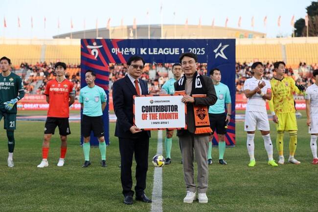강원FC는 지난달 30일 강릉하이원아레나에서 열린 하나은행 K리그1 2025 38라운드 포항스틸러스와 홈경기에서 10월의 공헌상 시상식을 진행했다.