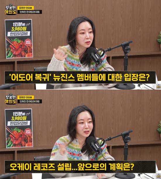 4일 유튜브 '장르만 여의도'는 라이브 방송을 진행했다. 이날 민희진은 '장르만 인터뷰' 코너에 출연해 하이브와의 풋옵션 청구 소송 관련 심경을 전했다.