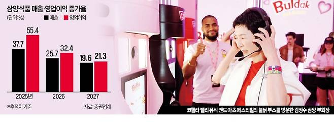 불닭볶음면 주요 타깃 소비자층의 관심도 좀처럼 높아지지 않고 있다. 구글과 틱톡 트렌드 지표에서 불닭 관련 관심도와 동영상 조회수 등은 8월 정점을 찍고 하락세다. 증권업계에서는 삼양식품의 연간 영업이익 증가율이 올해 55.4%에서 2026년 32.4%, 2027년 21.3%로 감소할 것으로 보고 있다.