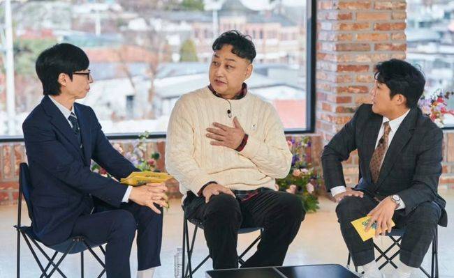 공개된 사진에는 '유 퀴즈 온 더 블럭' 촬영장을 찾은 김수용의 모습이 담겼다. 그는 유재석과 조세호 사이에 앉아 이야기를 나누고 있는 모습.