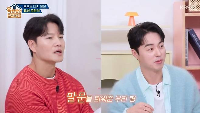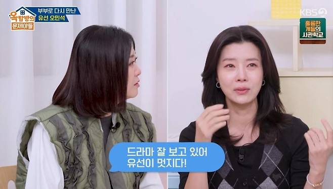 4일 방송된 KBS 2TV 예능 프로그램 '옥탑방의 문제아들'(이하 '옥문아')에서는 배우 유선과 오민석이 게스트로 출연해 MC 송은이, 김숙, 김종국, 홍진경, 주우재, 양세찬과 이야기를 나눴다.