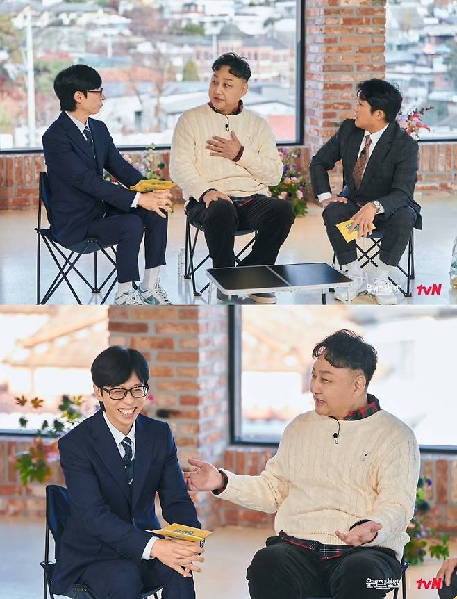 위급상황 이후 첫 스케줄로 '유퀴즈'를 선택했다는 김수용은 유재석, 조세호와 진지한 표정으로 이야기를 나누고 있어 눈길을 끈다.