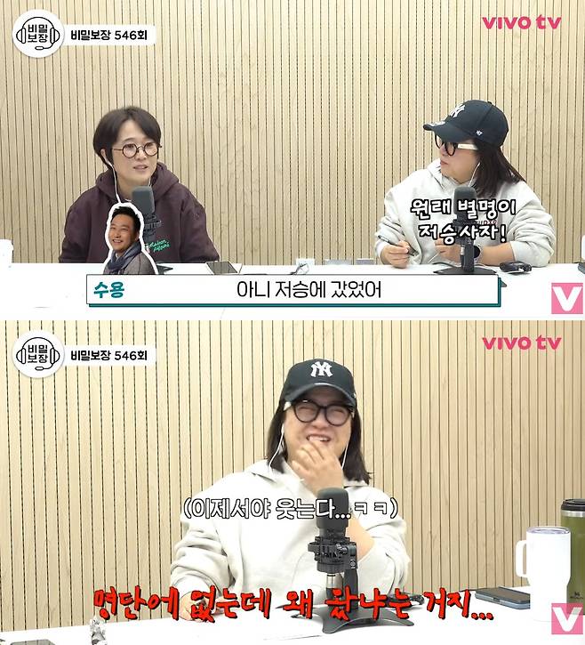 자신도 당시 상황을 잘 모른다고 고백한 김수용은 "얼핏 들었는데 되게 재밌더라"고 이야기했고, 송은이는 "재밌을 게 따로 있지"라고 탄식해 웃음을 또 한 번 안겼다.