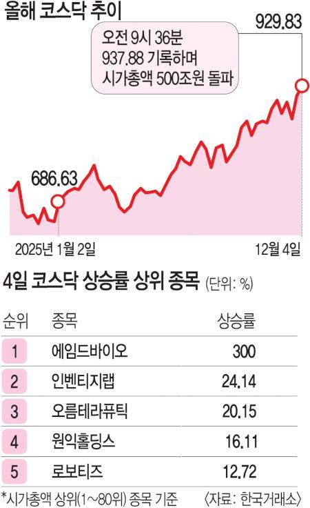 이젠 코스닥의 시간?… 시총 장중 사상 첫 500조 돌파