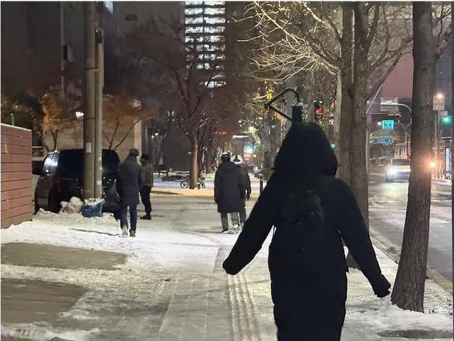 근처 곳곳의 차도에는 제설 차량이 염화칼슘을 연신 뿌려대고 있었다.