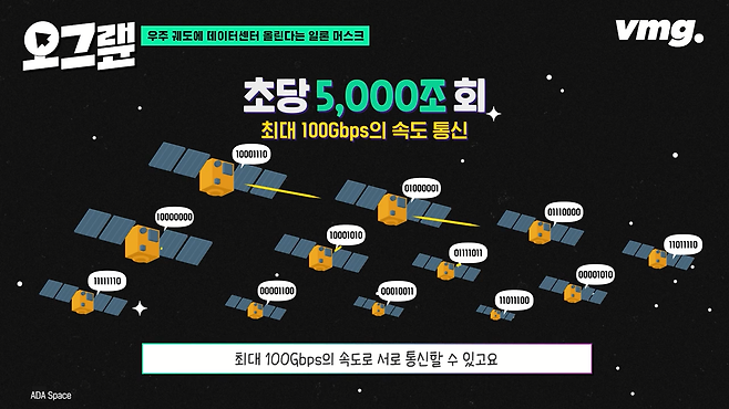 우주로 올라간 각각의 위성 한 기는 초당 744조 회의 연산 처리 능력을 갖고 있습니다. 그리고 12기의 위성을 엮어서 계산하면 연산 처리 성능이 최대 초당 5,000조 회까지 가능해지죠. 이 위성들은 레이저를 활용해 최대 100Gbps의 속도로 서로 통신할 수 있고요.