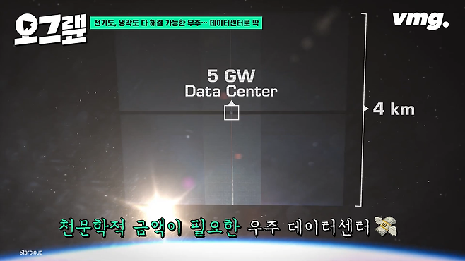 물론 우주 태양광 발전에 장밋빛 미래가 보장된 건 아닙니다. 우주 궤도에 데이터센터 만들려면 일단 우주에 설비를 갖춰두어야 할 텐데 쏘아 올려야 할 인프라를 생각해 보면 돈이 상당히 들 거라는 지적이 많아요. 가령 스타클라우드가 제시하는 5GW급 우주 데이터센터에는 가로세로 4km의 태양광 패널과 방열 패널이 필요합니다. 아무리 발사비가 줄었어도 이 정도 대규모 설비를 갖추려면 수백 억 달러의 비용이 들 거라는 게 전문가들의 지적이고요.