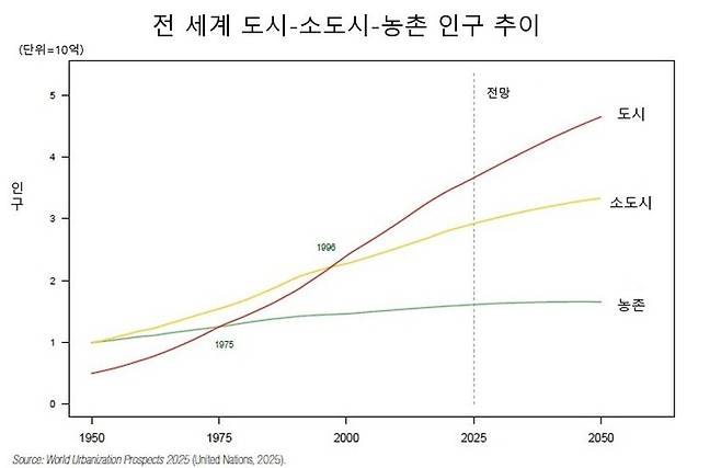 연구진은 또 도시와 소도시에 거주하는 사람들의 ‘비율’뿐 아니라 ‘실제 인구 수’도 2050년까지 계속 증가할 것으로 내다봤다. 반면 농촌 거주 인구는 2040년대에 정점을 찍은 뒤 2050년까지 감소할 것으로 예상했다.