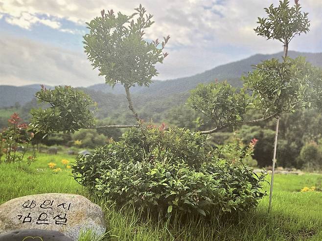 김기찬 명인이 지난 몇 년 동안 몰두해 온 작업은 정원 가꾸기였다. 하동 적량면 구재봉 자연휴양림과 갈라지는 길목에 자리한 삼화실 공방 앞마당. 참빗살나무, 모과나무, 엄나무와 매실나무 등 뿌리 깊은 나무들이 누군가의 선뜻 내어 놓은 나눔 속에서 이곳 정원 한자리에 모여들었다. 김기찬 명인은 기증받은 나무의 이름을 붓글씨로 쓰고 돌에 새겨 정원 곳곳에 세웠다.