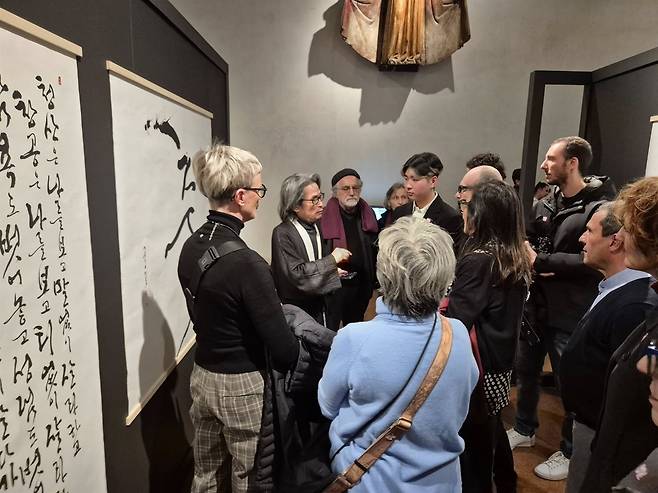 베니스 코레르박물관에서 11월 8일부터 2026년 1월 11일까지 두 달 동안 '문자_한글서예전'이 열리고 있다. 동·서양의 문자를 주제로 진행되고 있는 이번 전시는 한국이 주빈국이 되어 한글서예를 바탕으로 현재 한국에서 가장 왕성하게 한글예술을 펼치는 김두경, 강병인 한글 서예가의 작품들을 선보이고 있다.
