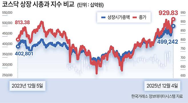 코스닥 시총은 역대급인데 지수는 게걸음