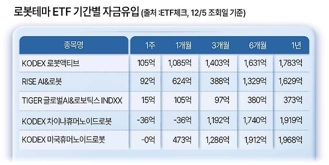 로봇 제조 기반 기업 중심의 국내 ETF과 기술·AI 대형주 중심의 해외 ETF 간 구성 차이가 이번 수급·성과 격차를 만들어낸 것으로 분석된다.