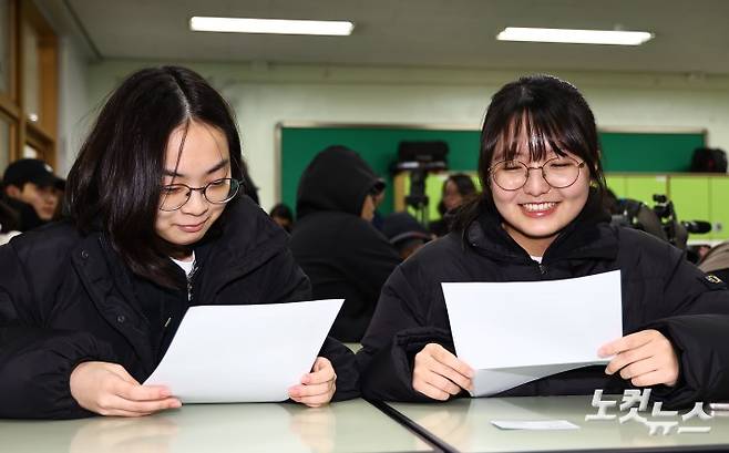 2026학년도 대학수학능력시험(수능) 성적표가 배부된 5일 서울 광진구 광남고등학교에서 수험생들이 성적표를 확인하고 있다.