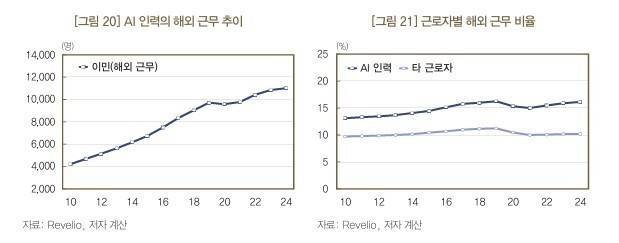 그러면서 우리나라의 전체 AI 인력 중 해외에서 근무하는 비중도 지난해 기준 16%로 높아졌습니다. 대략 우리나라 AI 인력 5명 중 1명은 해외 근무를 선택한다는 의미입니다.