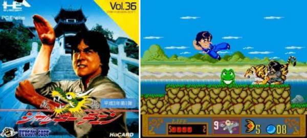 검떠: PC엔진으로 출시된 '재키찬'은 말 그대로 성룡을 테마로 한 액션 게임입니다. 캐릭터도 큼지막하고 PC엔진 특유의 화사한 색감과 액션감이 잘 맞물려 멋진 게임을 만들어냈다고 생각합니다. 다만 타이틀 화면을 보면 알듯이 성룡의 코가 너무 강조되어 있고.. 잘 표현하려고 한 건가 맥이려고 한 건가 좀 헷갈리는 수준이죠.