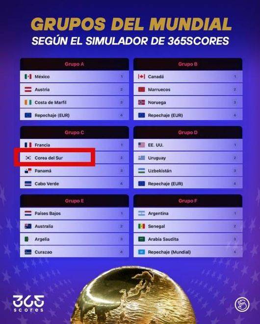 365스코어스의 시뮬레이션에서 한국은 프랑스, 파나마, 카보베르데와 함께 C조에 묶였다.