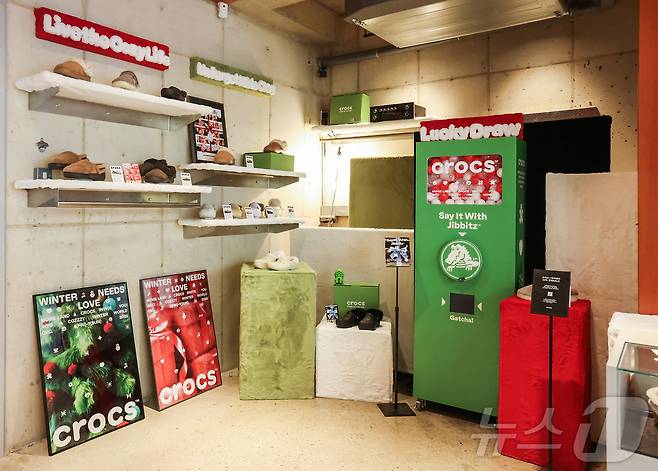(서울=뉴스1) = 12월 5일부터 7일까지 서울 성수동 무비랜드(Movie Land)에서 진행하는 크록스 팝업 ‘사랑이 필요한 계절’(WINTER NEEDS LOVE) 현장에서는 겨울 시즌과 어울리는 ‘털 크록스 컬렉션’(Furry Crocs Collection)이 전시돼 직접 체험할 수 있다. (크록스 제공. 재판매 및 DB 금지) 2025.12.5/뉴스1