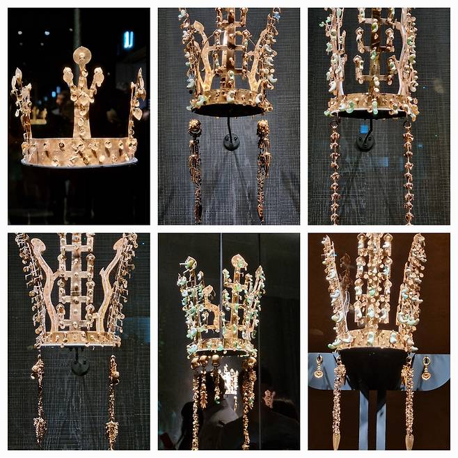 전시관에는 6점의 금관을 장식한 사슴뿔 모양, 나뭇가지 장식, 드리개, 곱은옥과 달개, 매듭 등을 서로 비교하며 확대하여 관찰할 수 있도록 비디오 자료도 설치되어 있었다. 손가락으로 터치하며 확대하면서 관찰하다 보면, 하나 하나 수작업으로 공들였을 장인의 위대함에 소름이 돋을 정도다. 본래 회당 150명 한정 30분 관람으로 정해져 있었지만, 사람들은 그 순간을 영원 속에 담기 위해 사진도 찍고 동행과 이야기 나누며 살펴보느라 시간은 점점 지체될 수밖에 없었다.