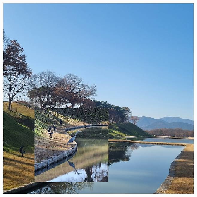 | ▲ 계림 해자 반월성 해자 경계석에 백로가 미동도 않고 서 있다 |