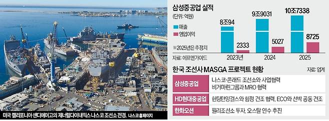 삼성중공업은 마스가 프로젝트가 가시화하는데도 좀처럼 적극적으로 나서지 않는 모습을 보였다. 지난 8월 비거마린그룹과 군수지원함 관련 MRO 분야에서 협력하기로 했지만, 선박 공동 건조까지는 아니었다. 하지만 이번 나스코와의 협력을 통해 미국에서 공동 건조 체제를 갖추고 유지·보수까지 나서 미국 내 종합 선박 서비스 회사의 틀을 갖추게 됐다.