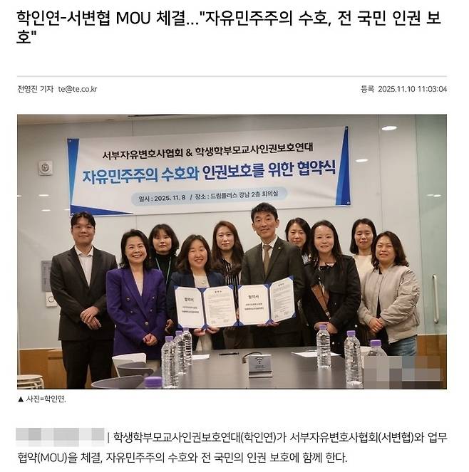 | ▲ 학생학부모교사인권보호연대가 지난 3일 학교에 보낸 공문에 첨부된 기사. |