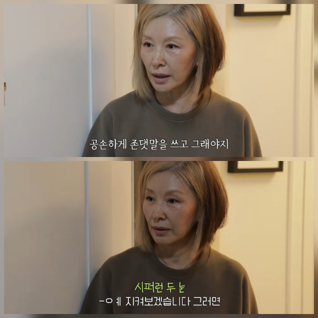 이미숙은 자신의 유튜브 촬영 현장에서 제작진과 인사를 나누다, 19년 선배 강부자로부터 “나보다 어려도 공손해야 한다”는 조언을 들은 일화를 공개했다.