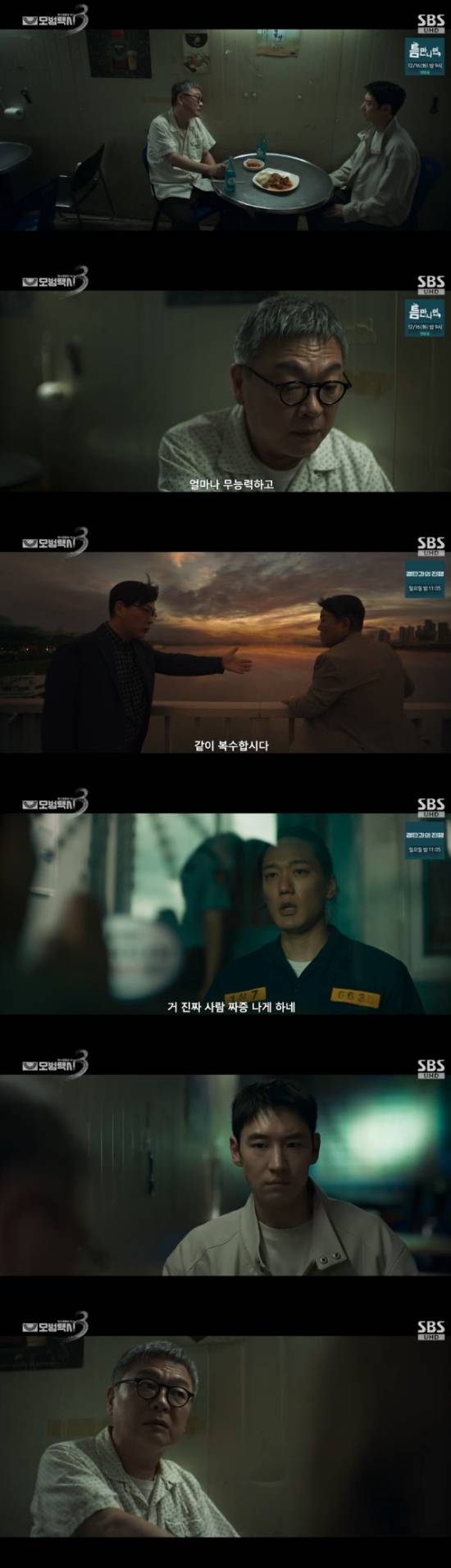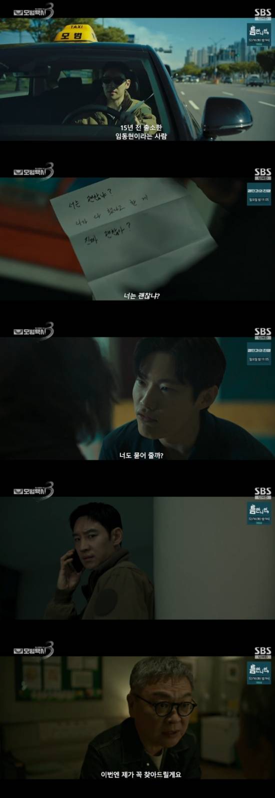 5일 방송된 SBS 금토드라마 '모범택시3' 5회에서는 장성철(김의성 분)과 박동수(김기천)의 15년 전 사연을 듣고 복수 대행 서비스를 시작하는 김도기(이제훈)의 모습이 그려졌다.