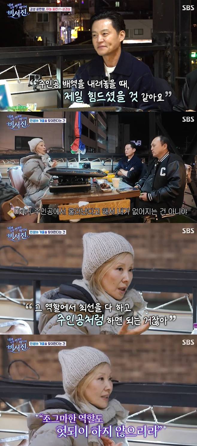 이에 이미숙은 "솔직하게 말하면 힘들진 않았다. 주인공에서 물러난다고 해서 내가 없어지는 건 아니다"라고 밝혔다. 이를 들은 이서진은 "잘 받아들이신 것 같다"고 말했다.
