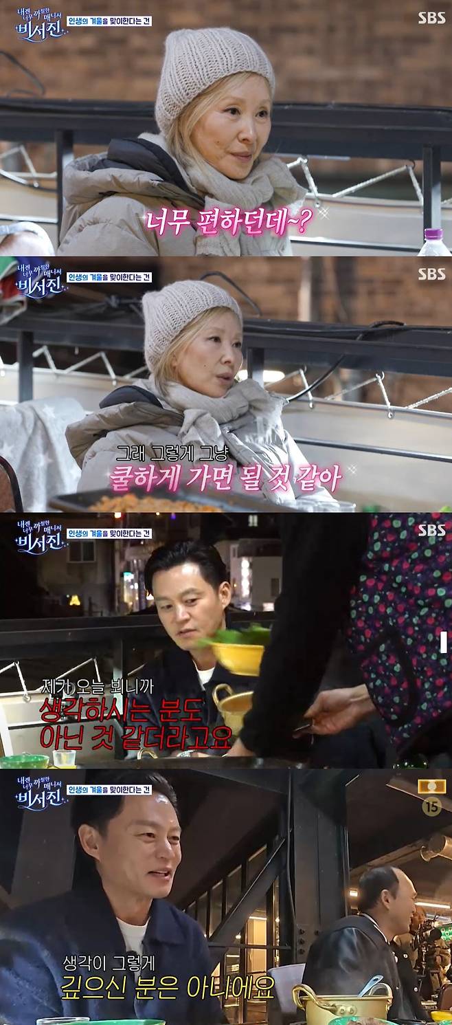 저녁 식사를 하던 중 이서진은 "제가 봤을 때 선배님은 잘 나가시고 주인공만 하시다가 나이가 드시고 내려놔야 할 때가 제일 힘드셨을 것 같다"라고 전했다.