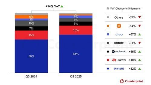 보고서는 "3분기 글로벌 폴더블 스마트폰 출하량은 지난해 같은 기간보다 14% 증가하며 역대 최대 분기 실적을 기록했으며 삼성 갤럭시 Z 폴드7 시리즈가 가장 큰 성장 동력이 됐다"고 분석했습니다.