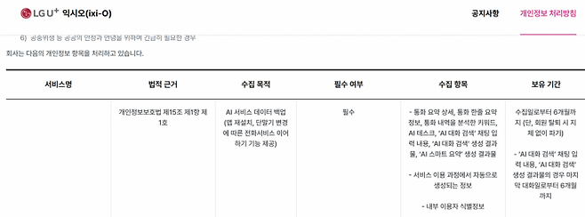 이에 대해 LG유플러스 관계자는 "통화 녹음본은 서버에 저장되지 않는다. 사용자가 익시오 앱을 재설치한 후에도 통화 요약본이 확인 가능하도록 서버에 6개월 동안 저장한다"며 "이러한 내용은 개인정보 처리방침에 나와있다"고 밝혔다.