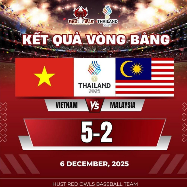방금 베트남 야구대표팀이 말레이시아를 상대로 5대 2로 승리했습니다.