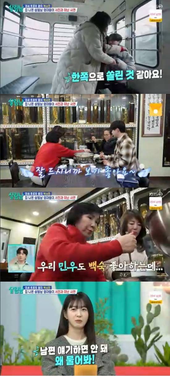 박서진은 이민우 어머니에게 남편은 생각나지 않으냐고 했다가 한소리를 들었다. 이요원은 "남편 얘기하면 안 된다"고 알려줬다.