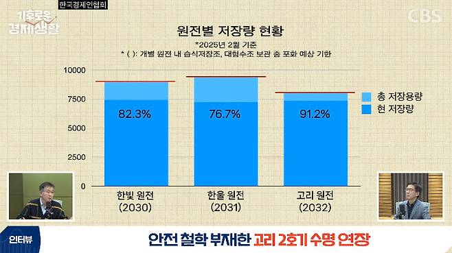◆ 홍종호> 그런 면을 봐야 할 것 같습니다. 또 최근 한미 관세 협상 과정에서 사용후핵연료 얘기가 나오지 않았습니까? 아마 시청자들께서 사용후핵연료가 도대체 지금 어떻게 보관되고 있는 건가, 규모가 어느 정도인가 정확한 팩트를 잘 모르실 수도 있을 것 같아요. 현재 상황이 어떻습니까?