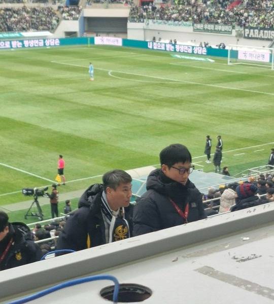 퇴장당한 이정효 감독은 남은 전반전을 기자석에서 잠시 지켜본 뒤, 스카이박스로 이동했다.