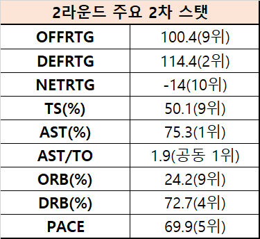 [울산 현대모비스, 2라운드 주요 2차 스탯]