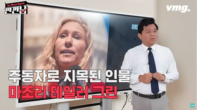 범인 색출 작업에 들어갑니다. 주동자로 지목된 인물, 마조리 테일러 그린이라는 인물입니다. 트럼프 대통령이 밀고 있는 '미국을 다시 위대하게 만들자'는 '마가(MAGA)'에서 트럼프 대통령의 행동·돌격 대장을 했던 사람이에요. 온갖 폭언, 욕설에 가까운 말을 다 도맡아서 하던 사람이에요.