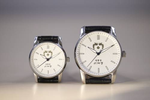 전통적인 대통령 손목시계와 마찬가지로 앞면에는 대통령 휘장과 함께 이 대통령의 서명이 들어갔으며, 시계판 바탕에는 태극 문양이 새겨졌습니다.