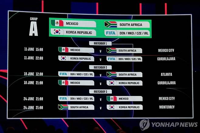 아직 결정되지 않은 유럽 PO 패스D 승자와의 1차전은 내년 6월 12일 금요일 오전 11시 멕시코 과달라하라의 아크론 스타디움에서 열립니다.