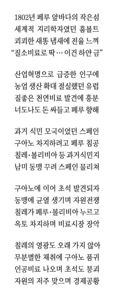 [강영운의 히코노미] '새똥'이 뒤바꾼 남미 지도 … 자원 전쟁의 시초, 구아노