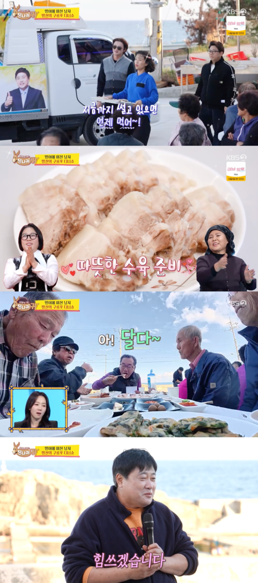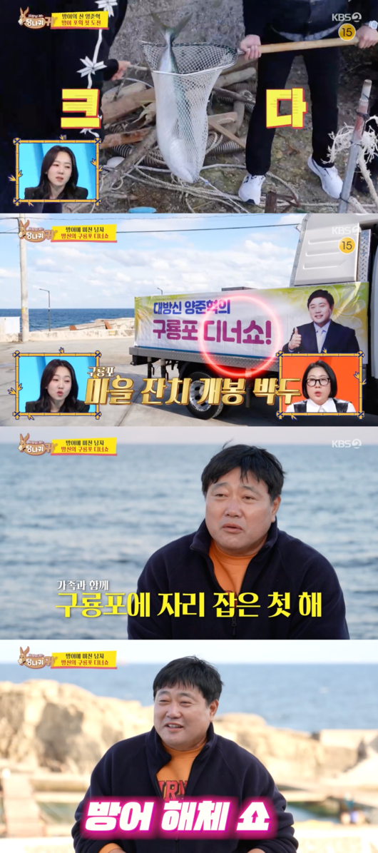 양준혁은 어르신들에 “제가 평생 야구만 하다가 구룡포 와서 방어로 제2의 인생, 가족처럼 따뜻하게 받아주셔서 감사드린다. 저는 뭐 이렇게 단순히 양준혁 혼자 잘 먹고 잘 살려고 온 게 아니라 다 같이 잘 먹고 잘 살게 어머니, 아버지 모시도록 하겠다”고 약속했다.