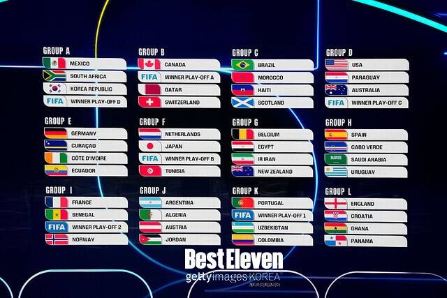 FIFA는 6일 새벽 2시(한국 시각) 미국 워싱턴 DC 존 F 케네디 센터에서 2026 북중미 월드컵 본선 조추첨식을 열었다. 한국은 공동 개최국 멕시코, 남아공, 그리고 덴마크·북마케도니아·체코·아일랜드가 경쟁하는 유럽 예선 플레이오프 D그룹 승자와 함께 A그룹에 편성됐다.