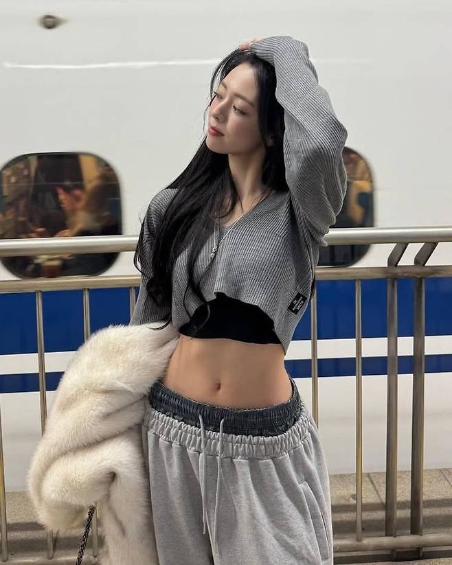 공개된 사진 속 유나는 기차역 플랫폼을 배경으로 회색 크롭 니트 톱을 걸친 채 블랙 이너와 로우라이즈 그레이 트레이닝 팬츠를 매치해 단숨에 눈길을 끌었다.