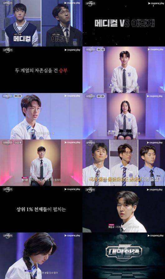 쿠팡플레이 예능 '대학전쟁' 시즌 3는 대한민국 메디컬, 이공계 최고 명문대의 타이틀을 걸고 두뇌 천재를 가리는 고순도 뇌지컬 서바이벌.
