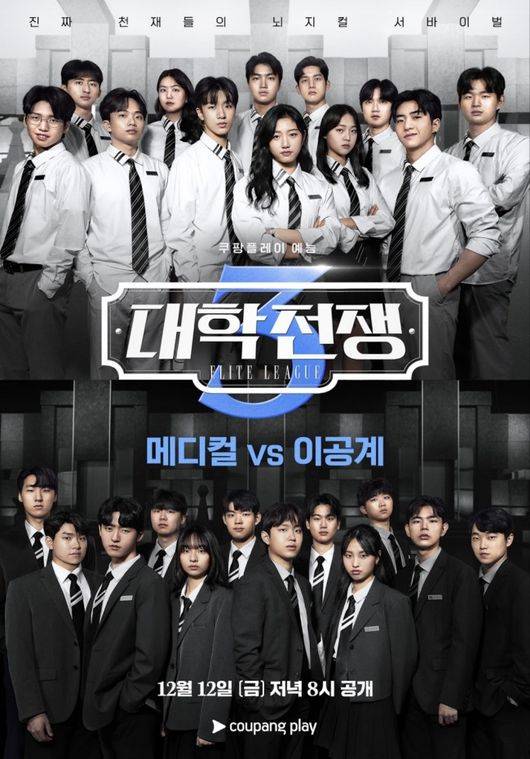 최고 명문대의 서열 싸움을 넘어 메디컬과 이공계의 두뇌 대결 구도로 시청자들에게 짜릿한 쾌감을 선사할 ‘대학전쟁’ 시즌 3는 오는 12일 오후 8시에 오직 쿠팡플레이에서 공개되며, 쿠팡 와우회원이 아니어도 누구나 무료로 시청 가능하다. 시즌 1, 2 전 회차 역시 쿠팡플레이에서 시청할 수 있다. /seon@osen.co.kr