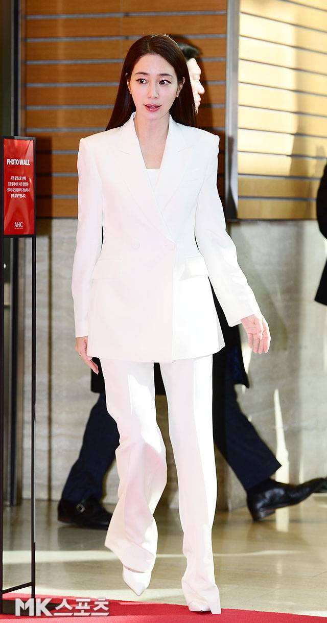 배우 이민정이 '겨울왕국' 엘사를 떠올리게 하는 화이트 수트 자태로 포토월을 압도했다.