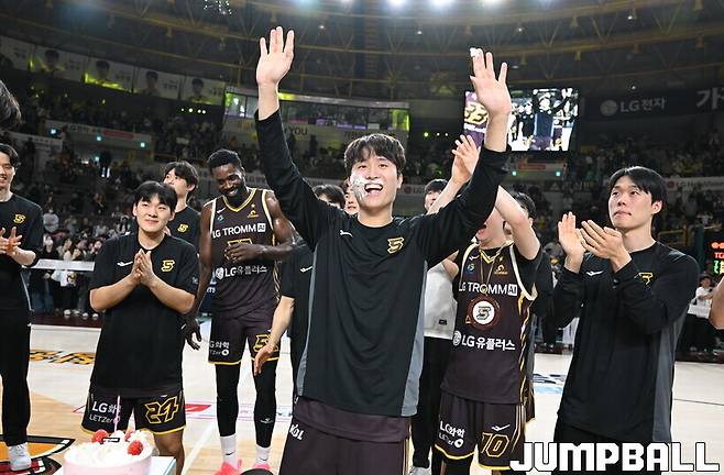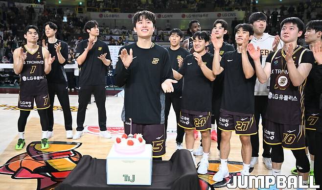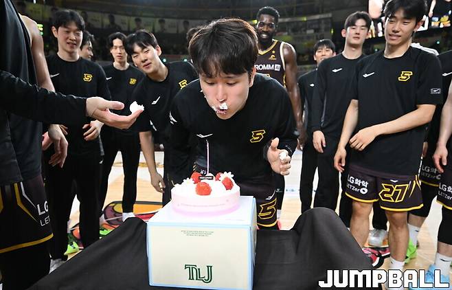 7일 창원체육관에서 창원 LG와 수원 KT의 맞대결이 열린 뒤 생일 축하 노래가 울려 퍼졌다.