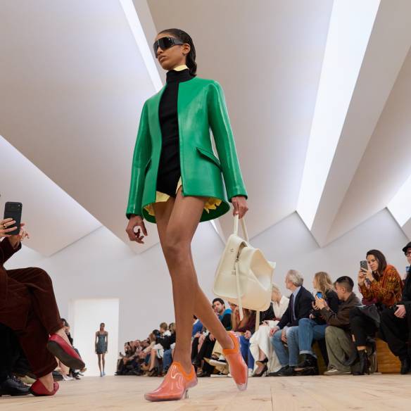 한편 프라다와 미우미우가 보여주는 서로 다른 컬러 플레이는 다음 시즌을 준비하는 좋은 참고서가 된다. 두 브랜드 모두 익숙하지 않은 방식의 조합을 시도했지만 기조는 다르다. 프라다가 새빨간 레드와 부드러운 라일락, 짙은 그린과 페일한 코럴 컬러처럼 채도 높은 선명한 컬러과 부드러운 파스텔컬러와 함께 매치하며 세련되고 조화롭게 만든 것과 다르게 미우미우는 크레파스처럼 쨍한 그린과 블루, 옐로와 오렌지 등 선명한 원색을 서로 충돌시켜 에너지가 넘치고, 낯설지만 호기심을 불러일으키는 스타일링을 선보였다.