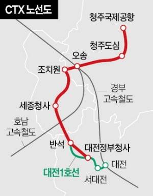 CTX 사업도 민자 적격성 조사를 통과하며 추진력을 얻고 있다. 2028년 착공, 2034년 개통을 목표로 5조1135억원이 투입된다. 대전정부청사~세종청사~청주 오송~도심~청주공항을 잇는 64.4㎞ 구간에 건설되며, 청주 도심은 지하로 통과한다. 충북대·도청·가경터미널 인근에 역사가 들어선다.